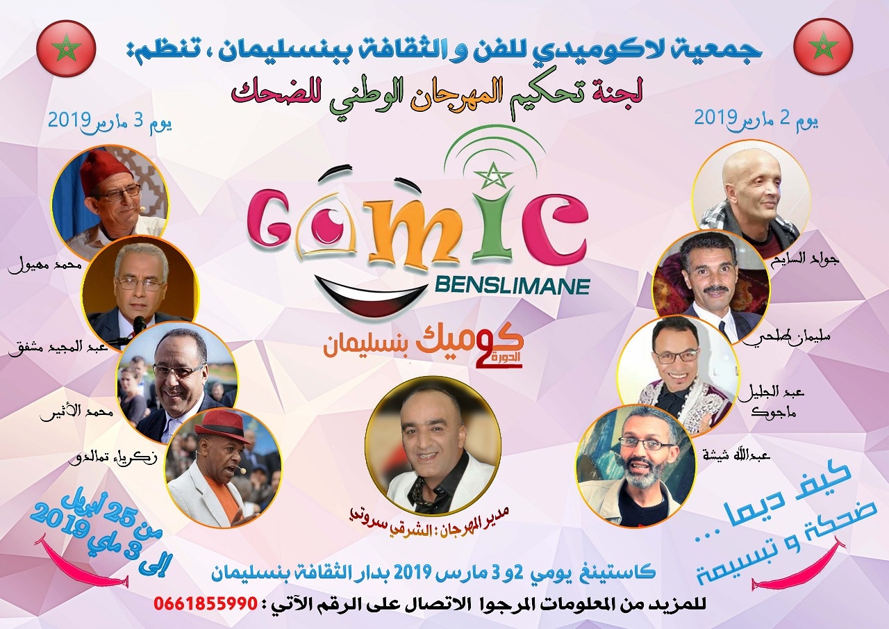 الكوميدي الشرقي سروتي يعلن عن برنامج النسخة الثانية من المهرجان الوطني للضحك (كوميك بن سليمان) ولجنتا تحكيم مكونتان من نجوم في الفكاهة والمسرح والإخراج التلفزيوني