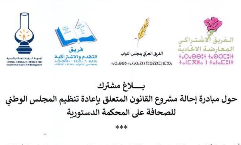 تُعلن مكوّنات المعارضة، الفرق البرلمانية والمجموعة النيابية والنواب غير المنتسبين بمجلس النواب، للرأي العام الوطني، أنها شرعت في سلك المسطرة القانونية اللازمة، لإحالة مشروع قانون رقم 26.25 المتعلق بإعادة تنظيم المجلس الوطني للصحافة، على المحكمة الدستورية، للبت في مطابقة مقتضيات هذا المشروع للدستور.